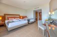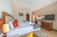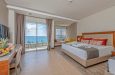 Sadržaj soba: Hotel poseduje 290 različitih tipova soba. Sve smeštajne jedinice se nalaze u glavnoj zgradi. Svaka soba ima svoj klima uredjaj, LCD SAT TV, telefon, mini bar ( po dolasku je napunjen sokovima i vodom, a u toku boravka puni se samo vodom). Svaka soba ima sef, WiFi internet, kupatilo , fen i balkon. Sobe imaju laminat. Hotel ima i sobe za goste sa invaliditetom(prilagodjena visina ležaja, veličina ulaza u sobu, i ostali namestaj prilagodjen posebnim potrebama). Sobe imaju pogled ili na more , ili na baštu, dok svi junior suits imaju pogled na more.